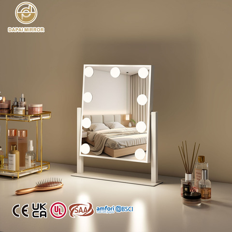 Fábrica 250x300mm Proveedor de hierro 3 modos de colores Blanco iluminado 9 bombillas regulables Maquillaje de hierro con luz Led Espejo de tocador